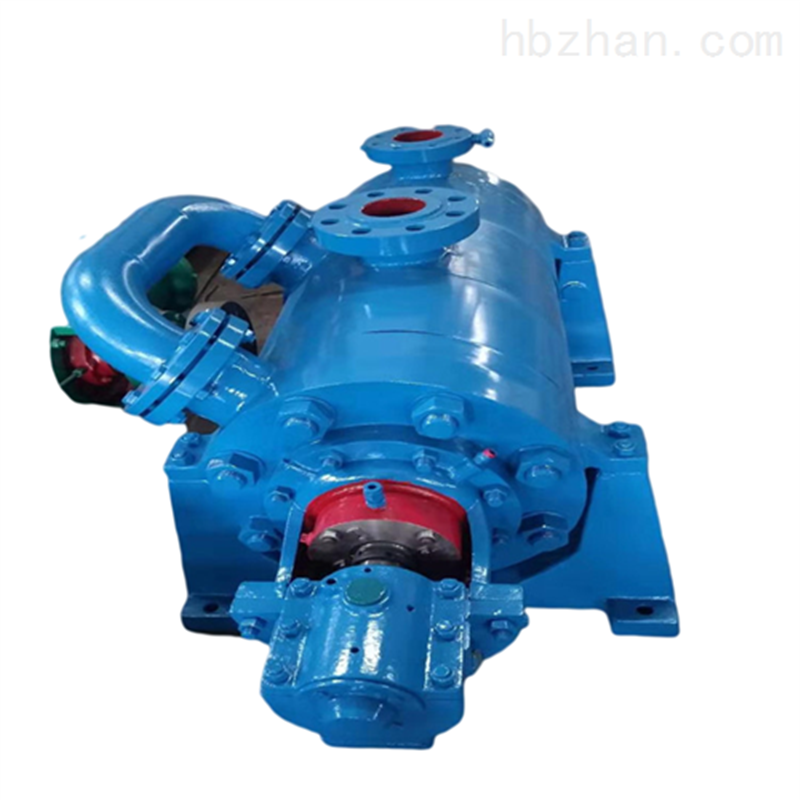 该泵为卧式节段式自平衡多级离心泵,泵的吸入口可以垂直向上或水平、排出口垂直向上布置。主要有:进水段、中段、出水段、次级进水段、正导叶、反导叶、正叶轮、反叶轮、轴、节流、减压装置、挡套、轴承体、过渡管等零件组成;中段由高强度的穿杠螺栓和进出水段联接,泵的进水段、中段、出水段之间的密封面均采用二硫化钼润滑脂金属面硬密封;转子由装在轴上的正叶轮、节流减压装置、反叶轮、轴套、轴承挡套等零件组成;轴承采用“固-游式"干油润滑结构,驱动端采用圆柱滚子轴承,末端采用角接触球轴承;泵的工作室由进水段、中段、出水段、次级进水段、正导叶、反导叶、过渡管等组成;转子部分与固定部分之间装有密封环、导叶套等进行密封。