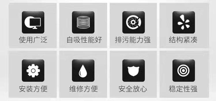 大流量自吸排污泵 分体式直连式不锈钢污水自吸泵 主要有进口接管、单向阀、出水接管、泵体、叶轮、机械密封、轴承座和泵轴。采用双叶片叶轮结构,提高了污物的通过能力。机械密封采用新型摩擦副,并长期处于油室内运行。结构紧凑、体积小、噪声小、节能,检修更换方便。自动控制柜可以根据所需变化,自动控制泵的启动与停止不需专人看管,使用方便。可根据用户需要配备安装方式,安装时人不必进入污水坑。能够在设计范围内使用,保证电机不过载。泵配上户外电机,无须建泵房,可直接安装在户外使用。