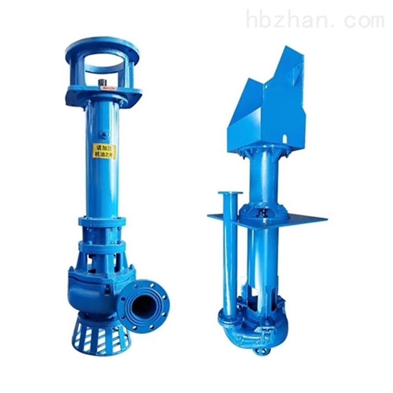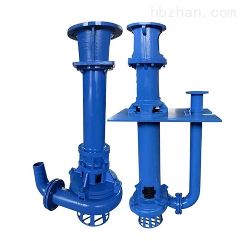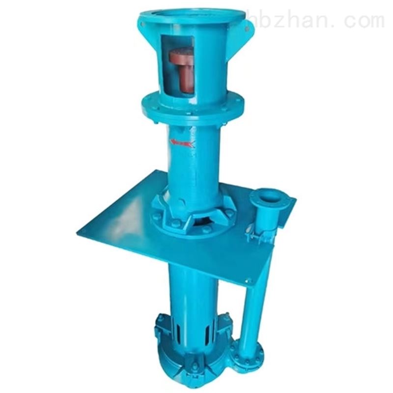 液下渣浆泵为单级、单吸悬臂式结构,用轴承座,支承座,联接管连接泵的水力部件,液体由出液管部件排出,泵的叶轮为半开式叶轮,在叶轮叶片进口延伸处设有搅拌叶片,该泵主要特点是在液下部位的泵轴,有足够的刚度,叶轮,泵壳之间不设轴承,不采用轴封,可以输送含有较大浓度固定颗粒的介质。泵插入液下的长度在800-2000之间,如果需要可以配带吸入管。轴封采用较大泵插入液体中运行,不设轴封,传动由立式电动机安装在电机支承和支承座上,用联轴器与泵相连。